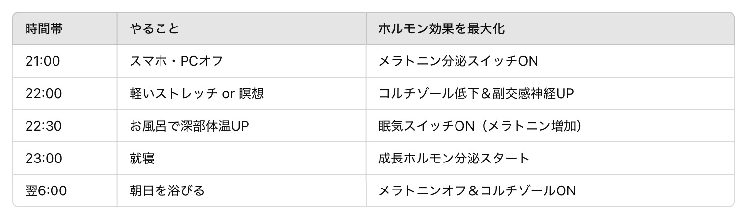 特に鍵となるのが、**深い睡眠で分泌される「成長ホルモン(GH)」**です。
